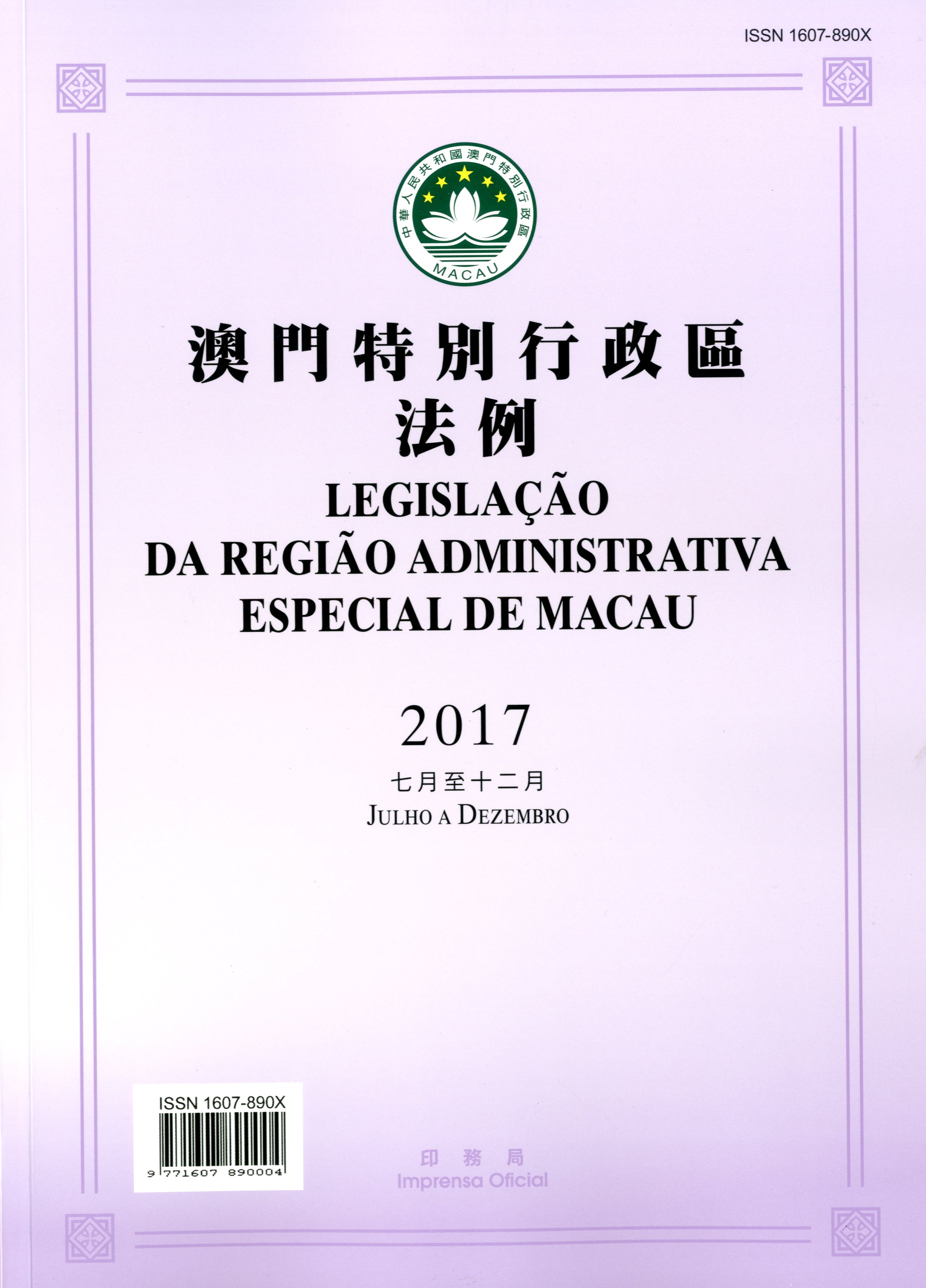 Legislação da Região Administrativa Especial de Macau (Julho a Dezembro de 2017)