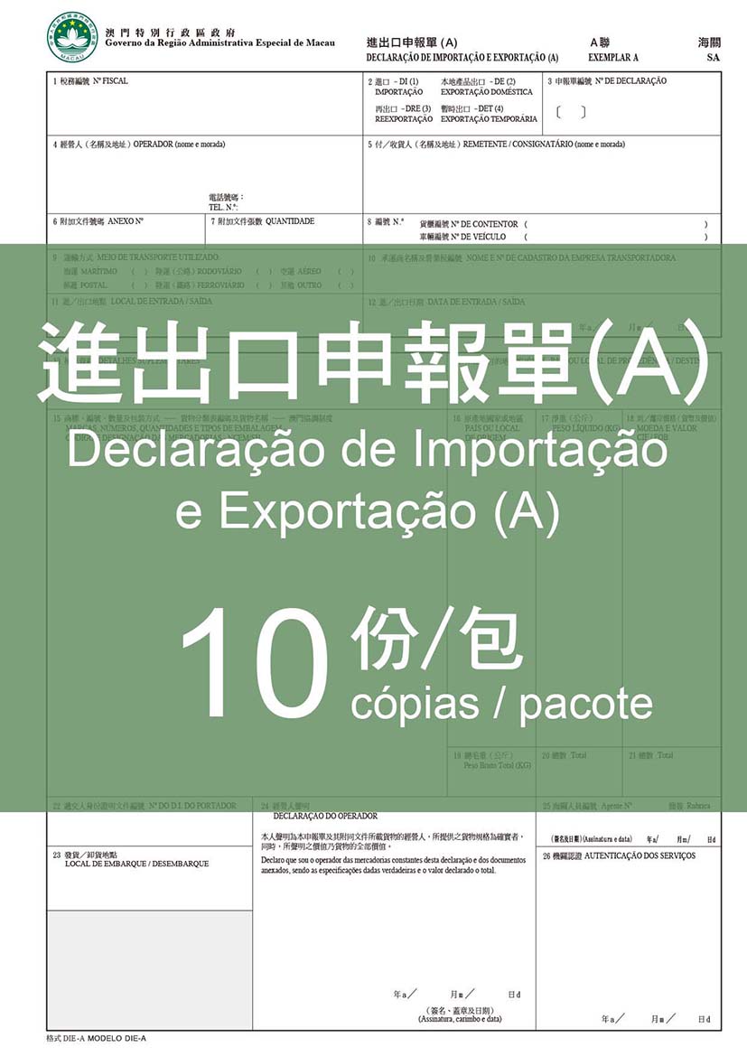 Declaração de Importação e Exportação (A) - 10 cópias / pacote