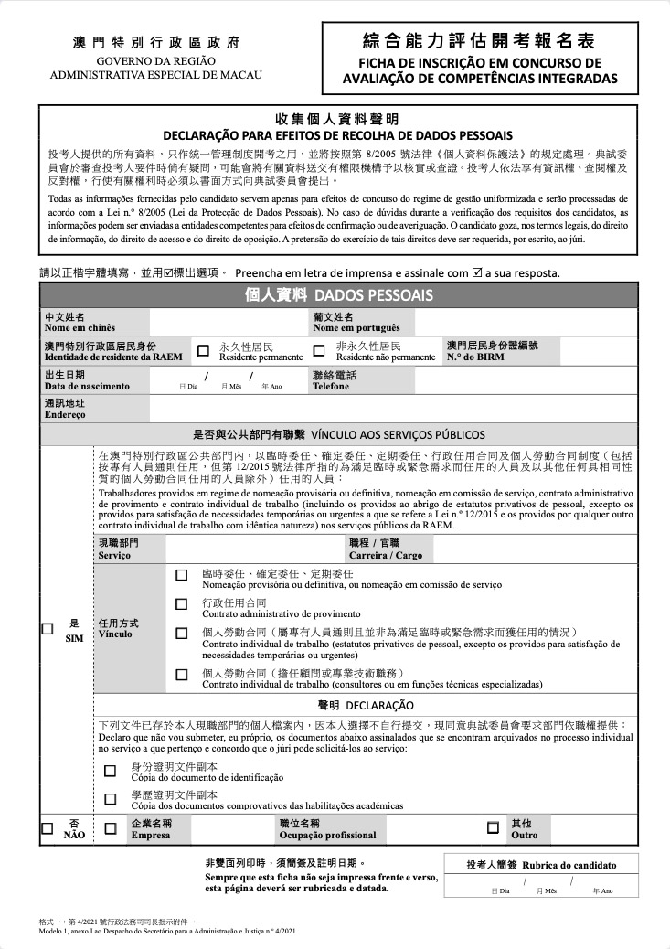 格式一:綜合能力評估開考報名表 - 2份/包