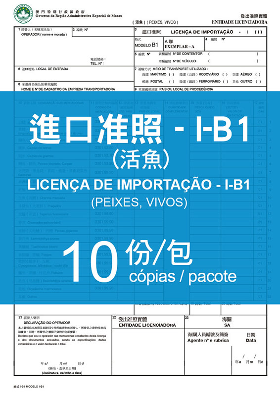LICENÇA DE IMPORTAÇÃO - I-B1 (PEIXES, VIVOS) - 10 cópias / pacote