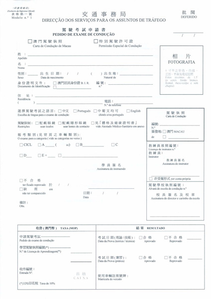 Modelo no.1 : Pedido de Exame de Condução
